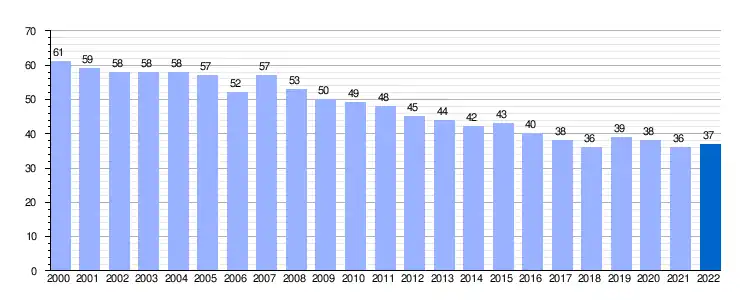 | Gráfica de evolución demográfica de Santa María de Redondo entre 2000 y 2022 |