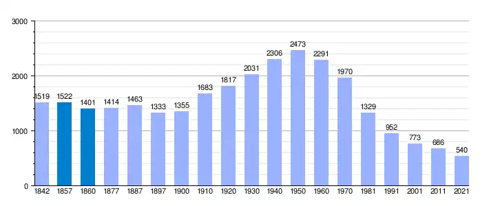 | Gráfica de evolución demográfica de Santa María del Campo Rus[2] entre 1842 y 2021 |