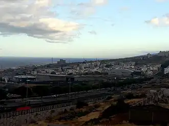 Santa María del Mar desde Cuevas Blancas. Al fondo la Autopista del Sur.
