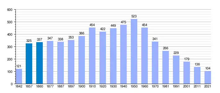 | Gráfica de evolución demográfica de Santa María del Mercadillo[2] entre 1842 y 2021 |