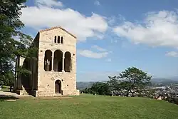 Santa María del Naranco es una iglesia católica situada a cuatro kilómetros de Oviedo (Asturias, España), sobre la ladera sur del monte Naranco. El edificio data del siglo IX y originalmente no se proyectó como iglesia, lo que ha suscitado dudas sobre cual fue el plan de usos original del monumento. Habitualmente se considera que se trató del Aula Regia del conjunto palacial que el rey Ramiro I mandó construir en las afueras de la capital del reino de Asturias. Otras teoría sostienen que se edificó como pabellón de caza, residencia real y, la más reciente, como un mausoleo funerario del propio Ramiro I.[1] La iglesia recibió ampliaciones relacionadas con su uso como templo a lo largo de la Edad Media y Moderna. En los 1930 todos los añadidos que no fueran alto medievales se demolieron, alcanzando el monumento su aspecto actual.