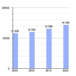 En 2020, el 46.7% de la población (6694 personas) eran hombres y el 53.3% (7646 personas) eran mujeres. El 64.1% de la población (9162 personas) tenía edades comprendidas entre los 15 y los 64 años.[5]