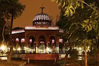 Data de finales del siglo XIX, cuando fue diseñado por el ingeniero José Ramón Ibarrola para ser el Pabellón de México en la Exposición Universal de 1884-1885. Su estructura (conformada por varios arcos y columnas neoárabes está realizada completamente en hierro, material de construcción en boga en aquella época, y es probable que se haya fundido en Pittsburgh, Pennsilvania, en hornos propiedad del magnate estadounidense Andrew Carnegie, debido a la relación de amistad que tenía con el diseñador del kiosco.