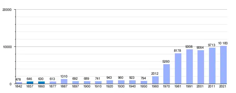 | Gráfica de evolución demográfica de Santa Margarida de Montbui[6] entre 1842 y 2021 |