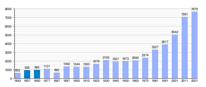 | Gráfica de evolución demográfica de Santa Margarita y Monjós[6] entre 1842 y 2021 |