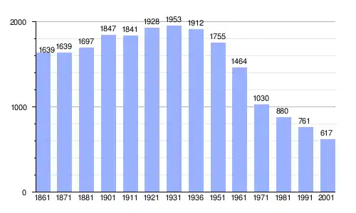 | Gráfica de evolución demográfica de Santa Margherita di Staffora entre 1861 y 2001 |