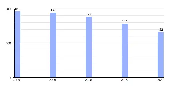 | Gráfica de evolución demográfica de Lagostelle entre 2000 y 2020 |