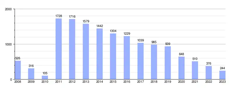| Gráfica de evolución demográfica de Santa Marta de Tormes[8] entre 1842 y 2021 |
