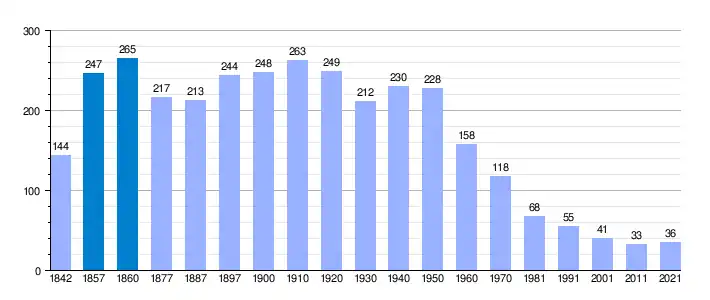 | Gráfica de evolución demográfica de Santa Olalla de Bureba[4] entre 1842 y 2021 |