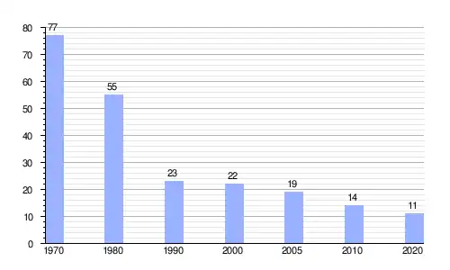 | Gráfica de evolución demográfica de Santa Rosa entre 1970 y 2020 |