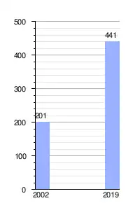 Evolución demografíca en Santa Rosa de Colmo entre 2002 y 2019, esto se ve potenciado tras el crecimiento de la comuna de quillota.