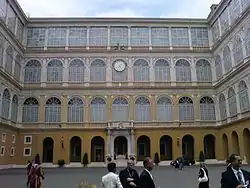 La curia romana es el conjunto de órganos de gobierno de la Santa Sede. El papa se sirve y tramita a través de ella los asuntos de la Iglesia, por lo que la Curia realiza su labor en nombre y bajo la autoridad del sumo pontífice, para el correcto funcionamiento de la Iglesia y el logro de sus objetivos.[6] Está compuesta por un grupo de instituciones, entre las que se encuentran la Secretaría de Estado, los dicasterios, los organismos de justicia y organismos económicos, y otras oficinas.[7]