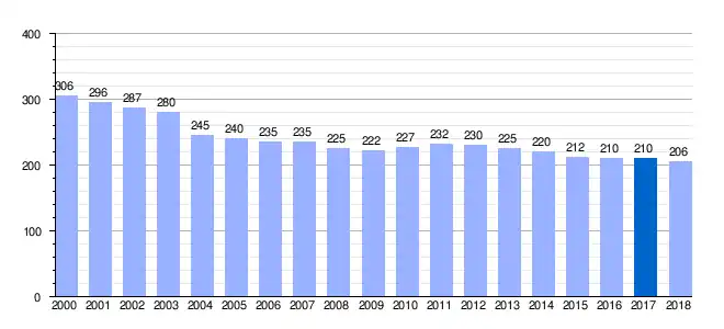 | Gráfica de evolución demográfica de Santa Inés[2] entre 2000 y 2018 |