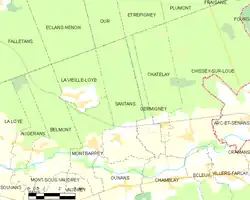 - Situación de Santans en un mapa de Francia y de comunas limítrofes (enlace roto disponible en Internet Archive; véase el historial, la primera versión y la última). (en francés)