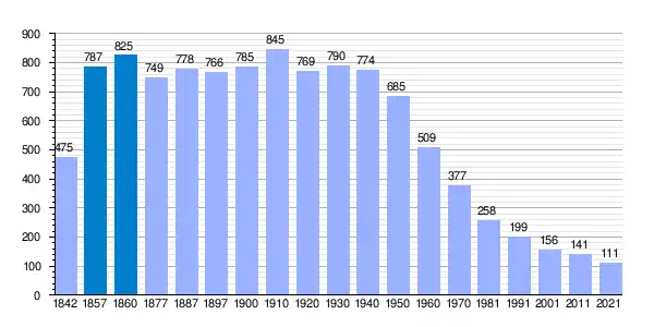| Gráfica de evolución demográfica de Santervás de Campos[7] entre 1842 y 2021 |