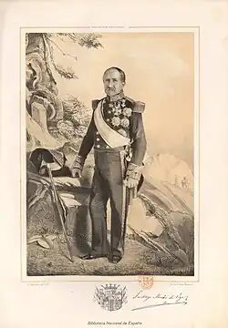 ![]() Santiago Méndez de Vigo. Dibujo y litografía de Domingo Valdivieso y Henarejos para Estado Mayor General del Ejército Español, obra escrita y publicada bajo la dirección Pedro Chamorro y Baquerizo, Madrid, 1851-1854. Biblioteca Nacional de España. | ||
