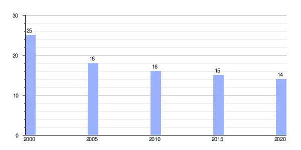 | Gráfica de evolución demográfica de Acevo (aldea) entre 2000 y 2020 |