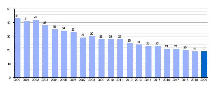 | Gráfica de evolución demográfica de Santibáñez de Resoba entre 2000 y 2020 |
