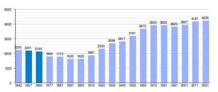| Gráfica de evolución demográfica de Santillana del Mar[24] entre 1842 y 2021 |