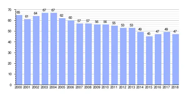 | Gráfica de evolución demográfica de Santiso entre 2000 y 2018 |