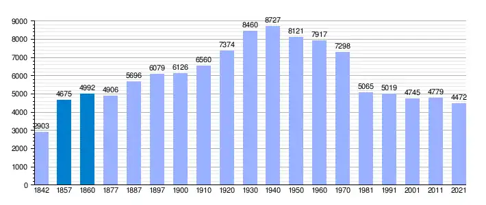 | Gráfica de evolución demográfica de Santisteban del Puerto[2] entre 1842 y 2021 |
