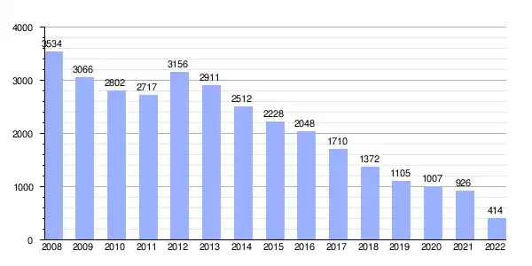 | Gráfica de evolución de la deuda viva del Ayuntamiento de Santisteban del Puerto entre 2008 y 2022 |