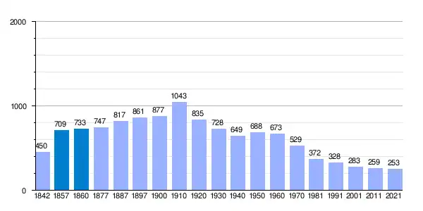 | Gráfica de evolución demográfica de Santiz[15] entre 1842 y 2021 |