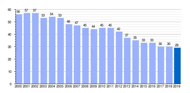 | Gráfica de evolución demográfica de San Domingo de Herguijuela[5] entre 2000 y 2019 |