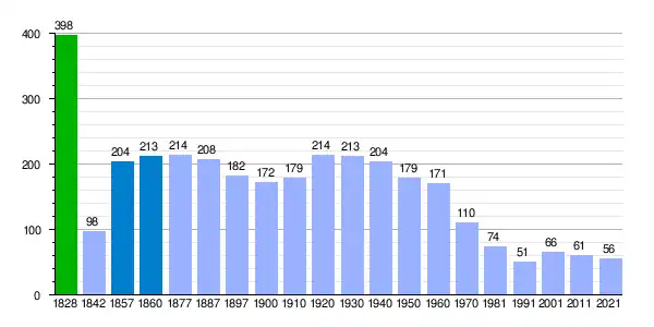 Población según el Diccionario geográfico-estadístico de España y Portugal de Sebastián Miñano.[8] Población de derecho según los censos de población del INE. Población de hecho según los censos de población del INE. |