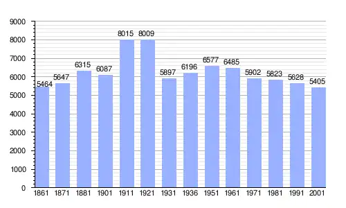 | Gráfica de evolución demográfica de Santo Stefano Quisquina entre 1861 y 2001 |