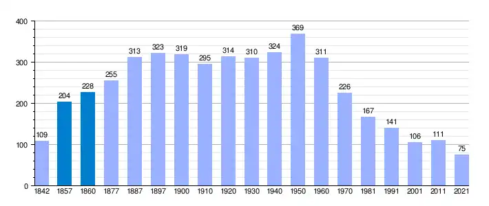 | Gráfica de evolución demográfica de Santo Tomé de Zabarcos[6] entre 1842 y 2021 |