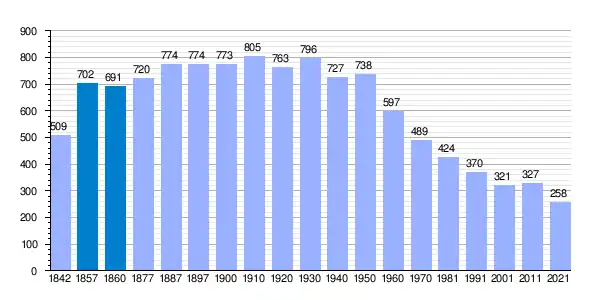 | Gráfica de evolución demográfica de Santo Tomé del Puerto[11] entre 1842 y 2021 |