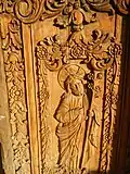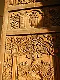 Los elementos tallados en madera son notable en toda la iglesia, desde tallas de representaciones de escenas bíblicas, a figuras esculpidas, y hasta el propio techo y decoraciones varias:
