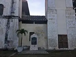 La entrada al antiguo cementerio consta de un arco, realizado también en piedra de coral, con un frontón de tres capas; las dos capas inferiores reciben remates a ambos lados, mientras que una imagen en relieve de un esqueleto humano destaca en la parte superior. Las paredes también están decoradas con relieves de cráneos y huesos humanos.[25] Aunque se dejaran de realizar entierros en el antiguo cementerio ya en 1760, sus puertas (que presentan un estilo arquitectónico más tardío) pueden haber sido construidas hacia finales del siglo XVIII, cuando se construyó la iglesia actual.