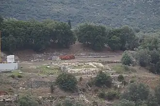 En la zona del santuario había también una casa sacerdotal o "skana", compuesta por varias habitaciones y situada en el lado sureste de la estoa;[6][7] El naiskos o pequeño templo de Asclepio;[6] un gran depósito de agua rectangular del período romano;[8] y un ninfeo, una construcción para excavar manantiales con un nicho casi circular en la parte trasera para la fuente de agua propiamente dicha.[1][9] Un poco al sur del santuario había unas termas romanas.[6]