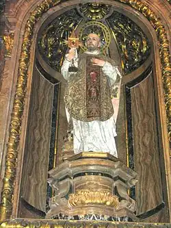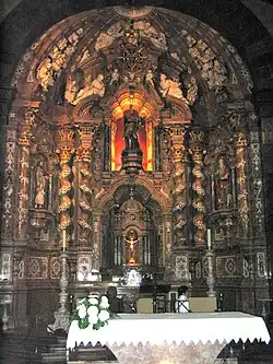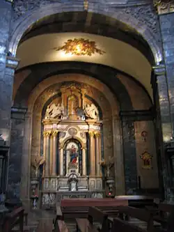 El equilibrio de volúmenes, que es una constante en todo el conjunto, se mantiene en el altar, en el que destacan el templete de exposición del Santísimo y la estatua en plata de san Ignacio de Loyola. Esta estatua es el cumplimiento de un voto de la Real Compañía Guipuzcoana de Caracas y fue realizada en Roma en 1741 por el valenciano Francisco de Vergara y ejecutada en plata por el platero alemán Joseph Bauer (en esta obra firmó como Giuseppe Agricola poniendo marcas de platero "GA"). Se colocó en el altar en 1758. Se complementa el altar con las imágenes de san José y san Joaquín.
