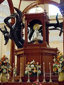En el centro, un baldaquino con templete octogonal, cobija la imagen de Nuestra Señora de Hornuez.