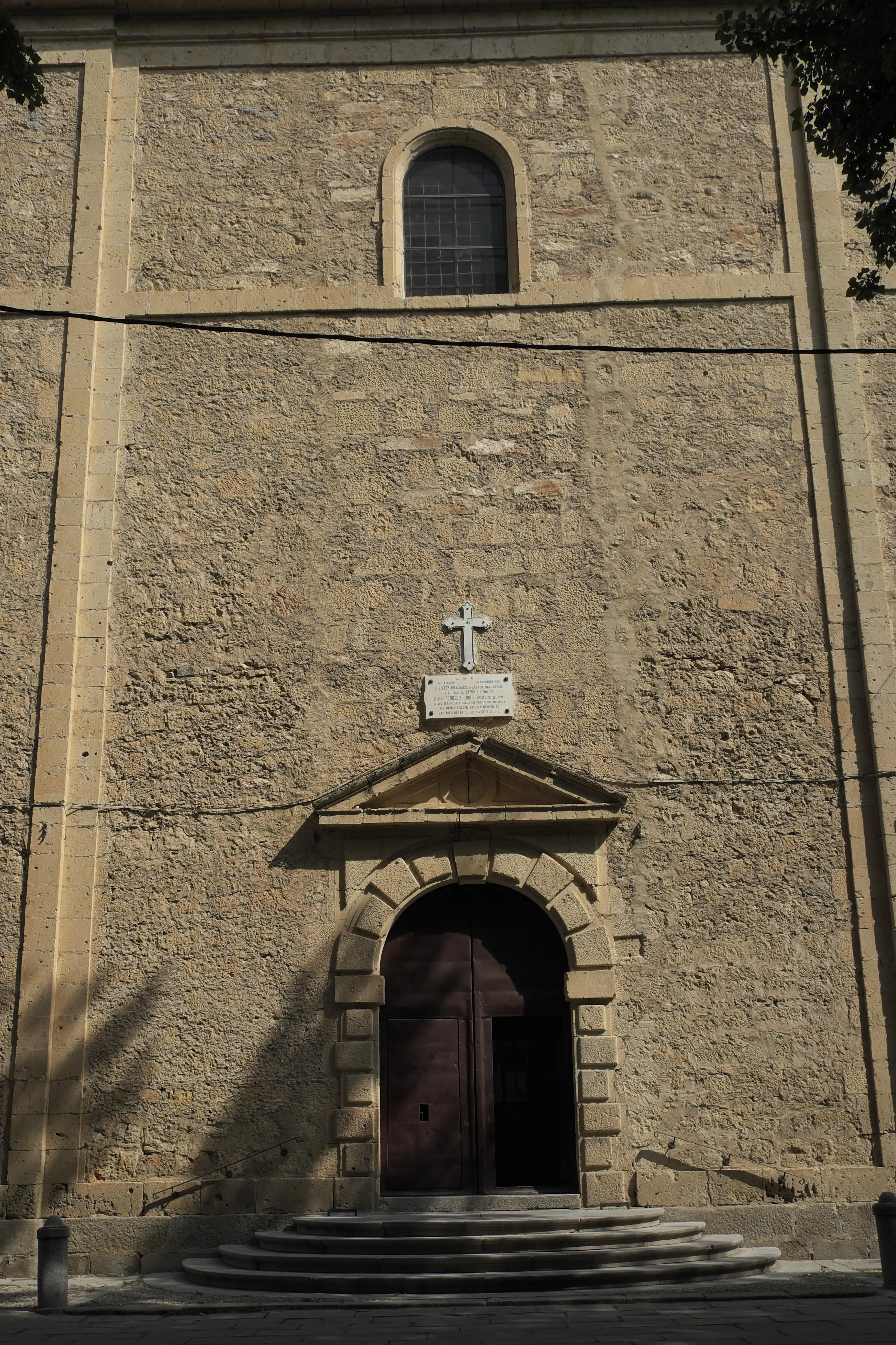 El exterior del edificio está desornamentado, salvo la puerta principal que cuenta con un arco de medio punto rematado con un frontón triangular.