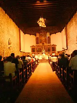 La bóveda de madera se realizó entre los años 1577 y 1583 siendo la primera obra renacentista de este tipo que se desliga claramente de la tradición de la bóveda de crucería gótica. Está formada por sesenta fajones en forma de arco carpanel (que consta de varias porciones de circunferencia tangentes entre sí y trazadas desde distintos centros) formados por tres o cinco piezas empalmadas entre sí que conforman una techumbre de casetones regulares. La estructura se comporta como si fuese un forjado plano cuyos solivos se curvaran en los extremos buscando apoyo en un estribo moldurado que apea sobre ménsulas clásicas de voluta. Entre los solivos las calles se cubren con casetones de tabla con cinta y saetín policromados con labor de menado en blanco. El presbiterio está cubierto por una bóveda de horno cubierta mediante un falso cortinaje realizado en marquetería rococó dorada y policromada que se apoya en seis viguetas. Enmarca perfectamente el espacio destinado al altar mayor en una escenografía barroca poco habitual.