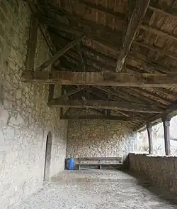 También se construyó en la misma época, adosado al cuerpo de la iglesia, una bodega para poder situar las arcas de la cofradía destinadas a almacenar «arvejos» (guisantes en bable) y pan, especies con las que contribuían fundamentalmente los devotos de la Virgen. Por la construcción de esta bodega, de cantería, se abonaron 154 reales el mismo año de 1744. En la actualidad, este recinto acoge un pequeño cementerio.[38]