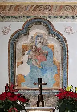 El interior de la iglesia presenta una sola sala, con altares enriquecidos con sencillas decoraciones manieristas y barrocas.