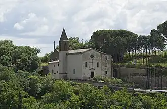Entre los edificios que una vez albergaron las estructuras del convento, se pueden ver los restos de una pequeña capilla de una sola cámara con techo a dos aguas, con una sencilla fachada en la que se abre el pórtico de entrada y, en la parte superior, un pequeño rosetón. : la capilla se encuentra detrás del lado izquierdo de la iglesia, más allá del campanario.
