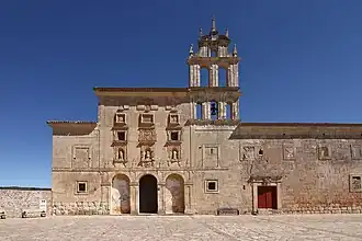 Por el norte, el convento se adosa a la iglesia, de estilo barroco y una sola nave que se cierra con bóveda de arista, y cubierta a dos aguas.