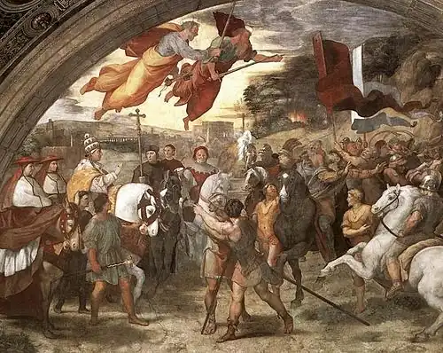 Probablemente, en cambio, Atila se retiró no tanto por ser supersticioso, y temeroso de que profanar una ciudad tan gloriosa le hubiera hecho daño, sino porque el ejército húngaro, como informa el cronista Idazio, fue diezmado por una plaga y una hambruna.[15] Además, el mismo Idacio informa que los hunos fueron atacados por las tropas enviadas por el emperador del Marciano Oriental, que intervino en apoyo del Imperio Occidental.[15] Fue también y sobre todo por estas consideraciones logísticas que los hunos de Atila detuvieron su avance hacia Roma y regresaron a sus territorios. Atila pereció al año siguiente, en el 453.