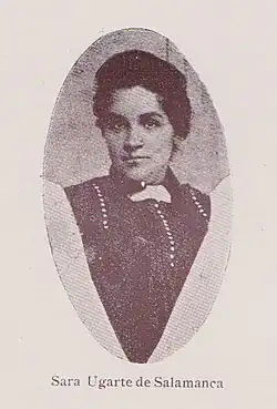 - ↑ Urquidi, José Macedonio (1919). «Sara Ugarte de Salamanca». En Arnó Hermanos Libreros Editores, ed. Bolivianas Ilustres. Heroínas, escritoras, artistas. Tomo I. La Paz: Escuela Tipográfica Salesiana. p. 175-194.