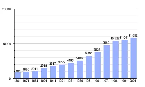 | Gráfica de evolución demográfica de Sarezzo entre 1861 y 2001 |