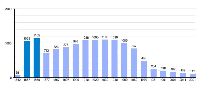 | 1842 | 1857 | 1860 | 1877 | 1887 | 1897 | 1900 | 1910 | 1920 | 1930 | 1940 | 1950 | 1960 | 1970 | 1981 | 1991 | 2001 | 2011 | |||||||||||||||||