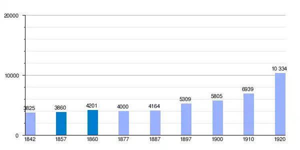 | Gráfica de evolución demográfica de Sarriá[5] entre 1842 y 1920 |