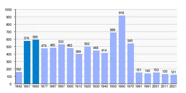 Población de derecho según los censos de población del INE Población de hecho según los censos de población del INEEntre el censo de 1857 y el anterior, crece el término del municipio porque incorpora a 255045 (Bastida de Bellera), 255151 (Erdo), 255197 (Las Iglesias) |