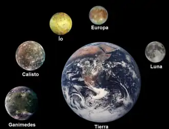 Se llaman satélites galileanos a las cuatro lunas de Júpiter descubiertas en 1610 por Galileo Galilei: Ío, Europa, Ganímedes y Calisto. Son los más grandes de los satélites de Júpiter, siendo visibles incluso con telescopios de baja potencia. Fueron avistados por Galileo el 7 de enero de 1610, y tras observarlos durante varios días concluyó que estaban orbitando Júpiter. Este descubrimiento reforzó la teoría heliocéntrica de Copérnico. Inicialmente, Galileo quiso darles nombres relacionados con la casa de Médici, familia a la que pertenecía su protector Cosme II de Médici. Pero finalmente los acabó denominando Júpiter I, II, III y IV (en orden a su cercanía al planeta), después de que el astrónomo Simon Marius propusiera en su obra Mundus Iovialis los nombres que acabarían convirtiéndose en los utilizados actualmente.[1]